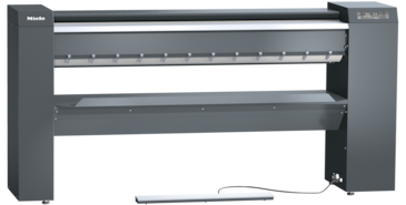 Calandra elétrica com comando moderno, revestimento em palha de aço e orientação flex. da roupa.